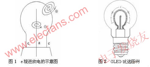 GLED的e旋進放電激發(fā)的渾然一體的弧光放電球的外形與傳統(tǒng)的白熾燈泡殼匹配,這是顯而易見的。