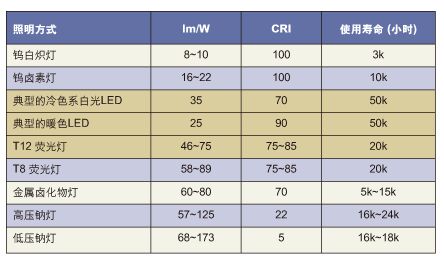 與標(biāo)準(zhǔn)的白熾燈相比,LED消耗每單位電能可以產(chǎn)生更多的光輸出。但與鹵素?zé)粝啾葧r,LED的實(shí)際光輸出的優(yōu)勢并不明顯。最新的LED具備出色的流明每瓦數(shù)值,但某些數(shù)值是在優(yōu)化條件下取得的,而通常不是在最高輸出條件下獲得的。一般而言,當(dāng)LED的電流增加時,光輸出量并未呈線性增加。因此,即使LED在0.5A電流下輸出x流明,它在1.0A電流下也不會輸出2x流明。