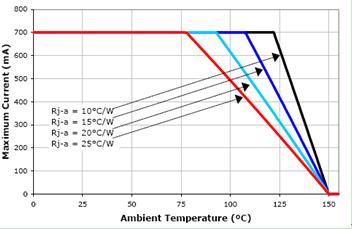 圖3 Cree 3WXLampXP-E最大注入電流與結溫的關系