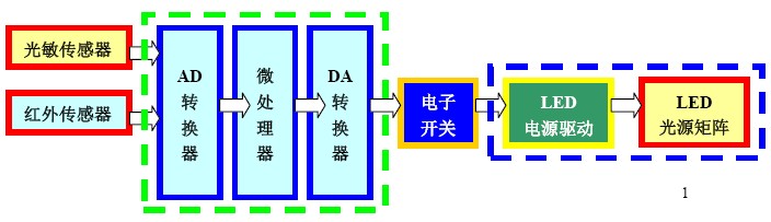圖1:傳感器與LED燈具系統(tǒng)框圖