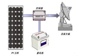 圖2是一個(gè)典型的供應(yīng)直流負(fù)載的光伏系統(tǒng)示意圖。其中包含了光伏系統(tǒng)中的幾個(gè)主要部件:光伏組件方陣:由太陽(yáng)電池組件(也稱(chēng)光伏電池組件)按照系統(tǒng)需求串、并聯(lián)而成,在太陽(yáng)光照射下將太陽(yáng)能轉(zhuǎn)換成電能輸出,它是太陽(yáng)能光伏系統(tǒng)的核心部件。