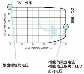 小功率的LED電源通常以恒流驅(qū)動,其恒壓功能是在輸出開路的情況下做為保護功能。小功率LED驅(qū)動器特性如圖1所示。