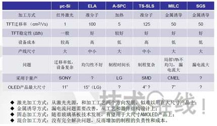 圖3 硅基TFT AMOLED技術(shù)比較