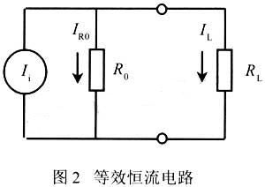 恒流源的工作原理如圖2所示。它由理想電流ii和輸出電阻ro組成。電流源的輸出電流ii=iro+il,如果ro阻值無窮大,此時iro等于零,即負載rl在任何值時,il=ii。事實上ro不可能等于無窮大。ro越大,il越接近ii,電源的穩(wěn)流性能越好[3]。