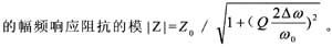 (2)諧振時,回路的等效阻抗為純電阻性質(zhì),其值最大,既z0=l/rc=qω0l=q/ω0c,式中q=