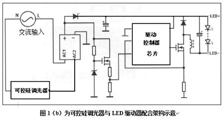 所以它是LED照明常用方法,見圖1(b)所示可控硅調(diào)光器與LED驅(qū)動器配合架構(gòu)示意。