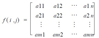 假設該數(shù)組的元素為:aij , 表示某矩形區(qū)域單位面積的照度值。并假設該數(shù)組為: m ×n (即m行n 列) 。f ( i , j) 稱為照度矩陣:
