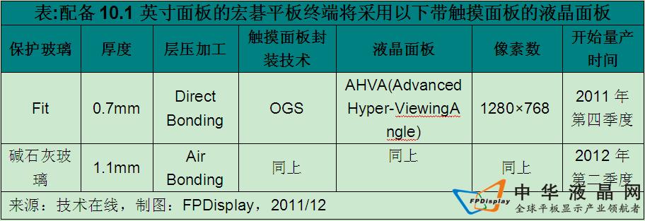 估計友達光電的月生產(chǎn)規(guī)模為1.5萬~1.8萬塊,成品率超過五成。厚度會比不采用OGS技術(shù)的產(chǎn)品減小3成。采用的玻璃為美國康寧稱為“Fit”的化學強化玻璃,F(xiàn)it雖不如“Gorilla”玻璃堅固,但十分易于加工。宏?目前正考慮采用基于更易加工的堿石灰玻璃的液晶面板(下表)。