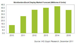 電子書閱讀器顯示器市場將面臨成長瓶頸。即使2011年整體出貨量成長逾倍,但市場研究機構IHS iSuppli預估,未來3年,電子書閱讀器顯示器的成長將逐漸放緩,甚至于2015年首度出現(xiàn)負成長。