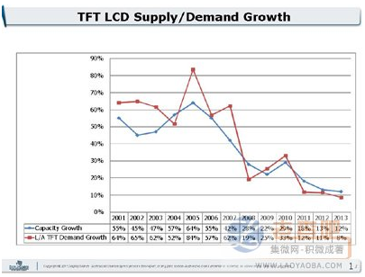 圖1 TFT LCD面板供給與需求成長速率