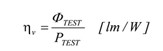 發(fā)光效率ηv的計(jì)算如下列公式(6)所述,為待測(cè)固態(tài)照明產(chǎn)品的總光通量ΦTEST除以總消耗功率PTEST,此指標(biāo)是用以評(píng)估固態(tài)照明電光效能轉(zhuǎn)換的重要指標(biāo)。