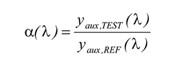 公式(2)中,yTEST (λ)為待測(cè)樣品在此系統(tǒng)下的光譜輻射計(jì)的讀值、yREF(λ)為參照標(biāo)準(zhǔn)燈在此系統(tǒng)下的光譜輻射計(jì)的讀值,α(λ)則為自吸收因子。