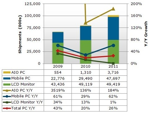 - 2011年下半年Mobile PC出貨量達2千650萬臺