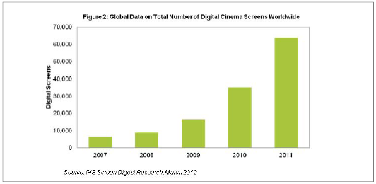 - 2011年全球數(shù)字影院屏幕大增到接近6.4萬塊