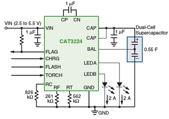 電荷泵型驅(qū)動(dòng)器CAT3224也適合相機(jī)閃光應(yīng)用,從而支持高百萬(wàn)像素相機(jī)閃光,以及替代氙氣閃光,配合纖薄設(shè)計(jì)。CAT3224是業(yè)界首款4 A單芯片超級(jí)電容LED驅(qū)動(dòng)器,集成了雙模1x/2x電荷泵,提供三項(xiàng)關(guān)鍵功能:精密的超級(jí)電容充電控制、電流放電至LED閃光的管理,以及為L(zhǎng)ED手電筒模式提供恒流。這三種模式的工作電流均可以3個(gè)外部電阻來(lái)簡(jiǎn)易編程,提供達(dá)4 A的LED閃光脈沖電流。超級(jí)電容技術(shù)的高峰值電流優(yōu)勢(shì),結(jié)合CAT3224簡(jiǎn)單的并行邏輯接口,使該器件非常適用于采用LED替代氙氣燈的應(yīng)用。