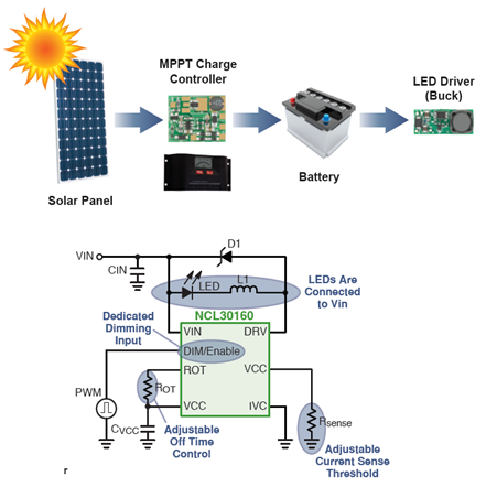 NCL30051與NCP30160IC在一起搭配工作,可以最少的外部元件簡(jiǎn)化電源電路設(shè)計(jì)。這種架構(gòu)使芯片組能夠集成在更緊湊及更高性價(jià)比的LED照明電源中,用于戶外照明(如LED路牌、街燈、停車(chē)場(chǎng)燈)等通用照明應(yīng)用。