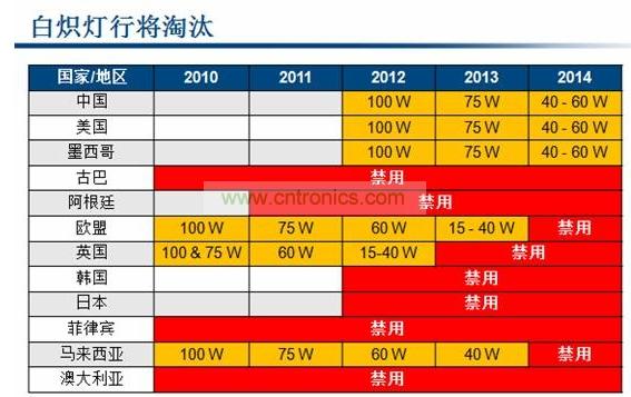 Power Integrations產(chǎn)品營(yíng)銷經(jīng)理Andrew Smith道:“所有的國(guó)家都是先從大功率的100W白熾燈開(kāi)始淘汰,接下來(lái)才是75W等小功率的白熾燈。歐盟在2010年就淘汰了100W白熾燈,美國(guó)、中國(guó)等則是在2012年開(kāi)始淘汰。所以市場(chǎng)上對(duì)于能替換100W白熾燈的大功率LED是有非常強(qiáng)勁的市場(chǎng)需求的。”