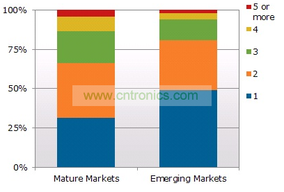 該報(bào)告還發(fā)現(xiàn),在成熟市場(chǎng)家庭平均擁有2.4臺(tái)電視,而在新興市場(chǎng)平均每戶為1.8臺(tái)。成熟市場(chǎng)中,超過三分之二的家庭有一臺(tái)以上電視,但在新興市場(chǎng)近一半的家庭只有一臺(tái)電視。鑒于平板電視持續(xù)推出新機(jī)種、價(jià)格益加實(shí)惠、以及消費(fèi)者對(duì)高品質(zhì)、大屏幕和高清晰度電視的消費(fèi)欲望,和成熟市場(chǎng)的消費(fèi)者一樣,越來(lái)越多的新興市場(chǎng)消費(fèi)者購(gòu)買平板電視(主要是液晶電視)來(lái)汰換他們現(xiàn)有的舊款式電視。