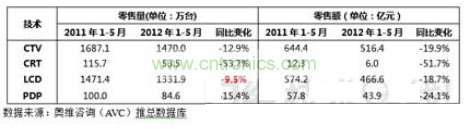 圖1 2012年1-5月中國彩電市場銷量與銷售額