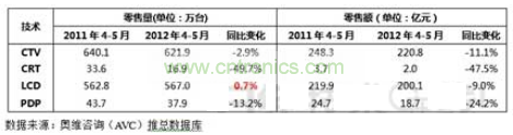 圖2 2012年4-5月中國彩電市場銷量與銷售額