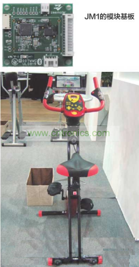安裝了Aplix開發(fā)的通信模塊“JM1”的訓(xùn)練機(jī)。是該公司用于演示的試制品。訓(xùn)練機(jī)的動作數(shù)據(jù)將發(fā)送到智能手機(jī)和平板終端,實(shí)現(xiàn)了與Web服務(wù)等聯(lián)動的功能。