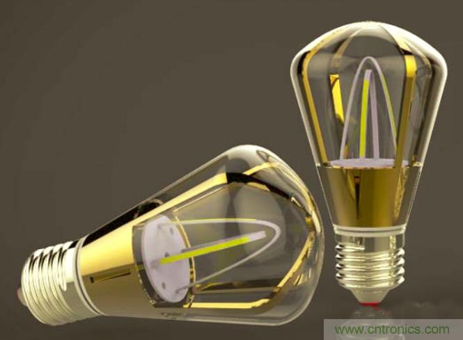今天的LED燈絲燈已經(jīng)可以做到像白熾燈一樣調(diào)光,而且無頻閃,量產(chǎn)水平普遍達(dá)到5瓦,最近顏重光高工又對LED燈絲燈做出了重大的設(shè)計創(chuàng)新,LED燈絲做在鋁基板上,不充氣,PC外罩下面配一圈鋁散熱器,色溫穩(wěn)定性做得比現(xiàn)有產(chǎn)品還要好,而且外觀極其華麗奪目,很像一款藝術(shù)品,連我看了都有了購買的沖動。