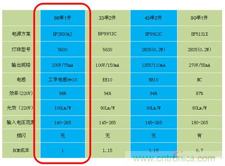 從上圖各種參數(shù)對比我們可以看出,單從成本來看,一定是線性方案最低,但同時會存在一些問題,比如光效,效率并不是很理想,最關(guān)鍵的一點,線性方案溫度較高,因為鋁基板溫度高而造成的硫化而存在一定的風(fēng)險。所以,從整體參數(shù)對比來看,66串1并的方案是性價比最高的。同理,8W T管方案推薦的是單串1并BP9918B的方案,單片集成工藝,集成啟動電阻,極簡的外圍電路,系統(tǒng)成本極具競爭力,其中值的一提的是該方案采用了CD54電感,可將BOM成本可以做到大概在0.85左右,且可以實現(xiàn)全貼片的方案,從而幫助客戶降低人工成本。