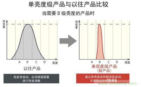 單亮度等級: 羅姆將ABCD即紅藍黃白的亮度更細(xì)分化,可從一般市場中的赤橙黃綠青藍紫細(xì)到17種顏色。