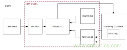圖示1-大聯(lián)大世平推出基于TI產品的車輛日間行車燈LED驅動器參考設計系統(tǒng)架構圖