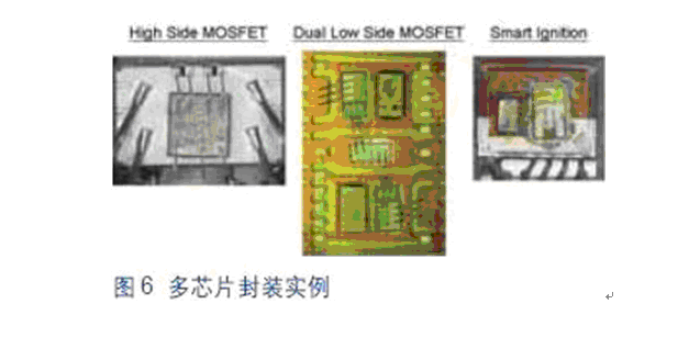 圖6所示為目前車載系統(tǒng)中采用多芯片封裝的幾個(gè)實(shí)例。這些智能化器件可以提供更高的系統(tǒng)性能監(jiān)控能力,通過集成保護(hù)功能提高功率系統(tǒng)的可靠性。如過流、過壓和過熱保護(hù)等功能都是這類產(chǎn)品的標(biāo)配。當(dāng)器件感測到有可能發(fā)生上述異常狀況時(shí),能夠把功率MOSFET置于自我保護(hù)整個(gè)系統(tǒng)的環(huán)境中。此外,這些器件還集成有附加診斷功能,用以監(jiān)控負(fù)載開路或短路,有助于指導(dǎo)汽車機(jī)械裝置隔離和糾正車輛中出現(xiàn)的問題。
