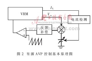 隨著VRM的深入發(fā)展,為滿足低電壓、大電流的需要,相繼提出了各種電路拓?fù)?,如帶抽頭電感的BUCK電路、有源鉗位的BUCK電路、耦合繞組的BUCK電路、移相軟開關(guān)BUCK電路等;并有優(yōu)良的控制方法問世,如V2控制、滯回控制等。以上的這些方法都甚是難以滿足電源模塊的發(fā)展需要。AVP的控制方法在適當(dāng)降低負(fù)載調(diào)整率的情況下有效地改善了模塊的動態(tài)響應(yīng),在低電壓、大電流的應(yīng)用場合中被人們重新認(rèn)識。本文對其從理論方法進(jìn)行分析,并采用新的檢測方法通過實(shí)驗證明了AVP良好的動態(tài)調(diào)節(jié)能力。