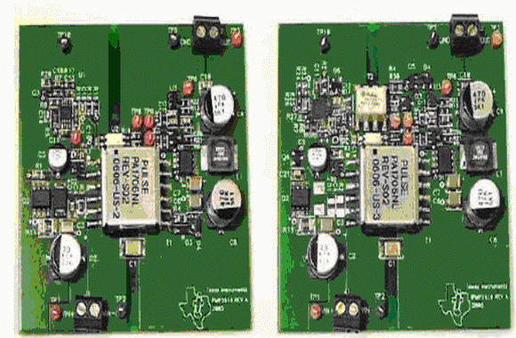 在高功率應(yīng)用中,越來越多的人選用有源鉗位正向轉(zhuǎn)換器。然而,只有極少數(shù)電源設(shè)計人員能夠意識到他們同樣可以在反向轉(zhuǎn)換器中使用有源鉗位。為了找出在反向拓撲結(jié)構(gòu)中采用有源鉗位控制的益處,我們根據(jù)表 1 中的規(guī)范設(shè)計、構(gòu)建并測試了兩個電源。這兩個電源均使用次級同步整流,但是其中一個使用電源變壓器來驅(qū)動同步 FET,另一個則使用一個柵極驅(qū)動變壓器并且還采用了一個有源鉗位。POE 輸入要求產(chǎn)生了許多規(guī)范,但是我們可以擴大其輸入范圍以實現(xiàn)在電信領(lǐng)域的應(yīng)用。為了公平比較起見,我們使主要組件不受該兩種設(shè)計中使用兩種完全一致的方法所產(chǎn)生的不同差異的影響,圖 1 給出了每個電路的圖片。我們還需使兩個電路板中組件的安放位置和布局一樣。在這兩個電路中,最值得注意的不同點是有源鉗位電路中柵極驅(qū)動變壓器的添加。