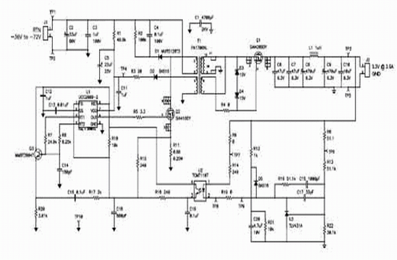 圖 3-該設(shè)計使用一個低成本的、簡化的電流模式 PWM 控制器(即 UCC2809)對電源進行控制