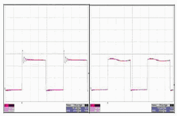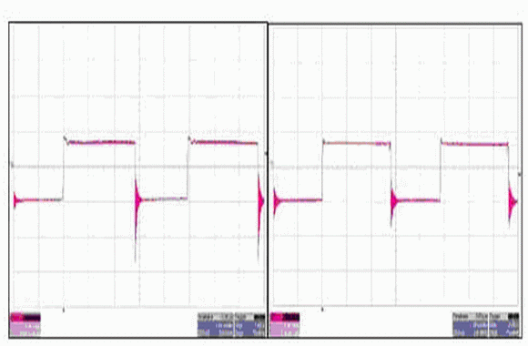 圖 6 傳統(tǒng)同步反向電源的負振鈴要比有源鉗位反向電源的負振鈴嚴重很多