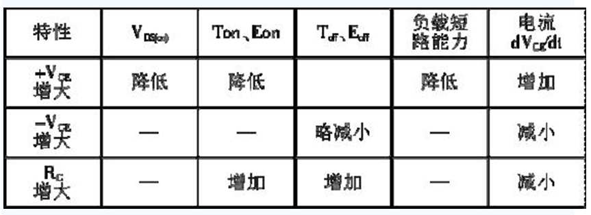 當(dāng)VGS 增加時,通態(tài)電壓下降,IGBT 的開通能量損耗下降,但是VGE 不能隨意增加,因為VGE 增加到一定程度之后對IGBT 的負(fù)載短路能力及dVCE/dt 電流有不利影響。