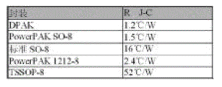 表1 各種功率MOSFET封裝類型的功耗