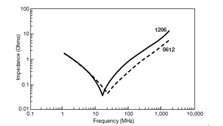 圖2:1000-pF陶瓷電容器的典型阻抗幅相特性。