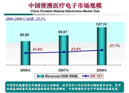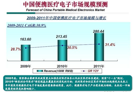 - 未來3年,中國便攜醫(yī)療電子市場年復(fù)合增長率將超過30%