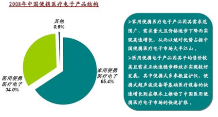 - 2008年國內(nèi)便攜式醫(yī)療電子產(chǎn)品市場的總量達(dá)到127億的規(guī)模