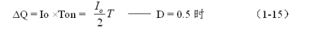 由圖1-6可以看出,在控制開關(guān)的占空比D等于0.5的情況下,電容器充、放電的電荷和充、放電的時間,以及正、負電壓紋波值均應(yīng)該相等,并且電容器充電流的平均值也正好等于流過負載的電流。因此,電容器充時,電容器存儲的電荷ΔQ為: