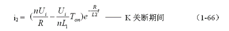 式中負(fù)號(hào)表示反電動(dòng)勢(shì)e2的極性與(1-62)式中的符號(hào)相反,即:K接通與關(guān)斷時(shí)變壓器次級(jí)線圈產(chǎn)生的感應(yīng)電動(dòng)勢(shì)的極性正好相反。對(duì)(1-64)式階微分方程求解得: