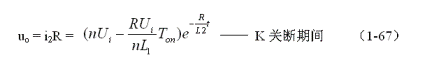 如果(1-75)式中正激電壓沒有電流輸出,就不能把正激電壓看成是正激式輸出電壓,我們應(yīng)該把它看成是反激式輸出電壓的一個(gè)過(guò)程,就是為反激式輸出電壓存儲(chǔ)能量。這樣定義雖然有點(diǎn)勉強(qiáng),但主要目的還是為了讓我們?cè)鰪?qiáng)對(duì)開關(guān)電源工作原理的理解。