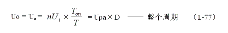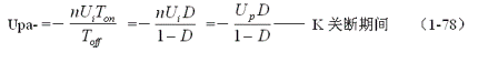 在變壓器開關(guān)電源中,正激式輸出電壓的計(jì)算比較簡(jiǎn)單,而反激式輸出電壓的計(jì)算相對(duì)來(lái)說(shuō)很復(fù)雜,因此,如果沒有十分必要,最好采用半波平均值的概念和(1-75)式,通過(guò)計(jì)算正激電壓的半波平均值,來(lái)推算反激式輸出電壓的半波平均值。因此,(1-75)式主要還是用來(lái)計(jì)算反激式輸出電壓的半波平均值的。