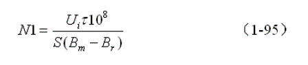 (1-95)式就是計(jì)算單激式開(kāi)關(guān)電源變壓器初級(jí)線圈N1繞組匝數(shù)的公式。式中,N1為變壓器初級(jí)線圈N1繞組的最少匝數(shù),S為變壓器鐵心的導(dǎo)磁面積(單位:平方厘米),Bm為變壓器鐵心的最大磁感應(yīng)強(qiáng)度(單位:高斯),Br為變壓器鐵心的剩余磁感應(yīng)強(qiáng)度(單位:高斯),Br一般簡(jiǎn)稱(chēng)剩磁,τ = Ton,為控制開(kāi)關(guān)的接通時(shí)間,簡(jiǎn)稱(chēng)脈沖寬度,或電源開(kāi)關(guān)管導(dǎo)通時(shí)間的寬度(單位:秒),一般τ取值時(shí)要預(yù)留20%以上的余量,Ui為工電壓,單位為伏。式中的指數(shù)是統(tǒng)一單位用的,選用不同單位,指數(shù)的值也不一樣,這里選用CGS單位制,即:長(zhǎng)度為厘米(cm),磁感應(yīng)強(qiáng)度為高斯(Gs),磁通單位為麥克斯韋(Mx)。