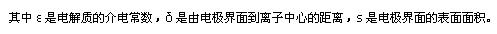 圖一為超級電容器的模型,超級電容器中,多孔化電極采用活性炭粉和活性炭和活性炭纖維,電解液采用有機(jī)電解質(zhì),如丙烯碳酸脂(propylene carbonate)或高氯酸四乙氨(tetraetry lanmmonium perchlorate)。工作時,在可極化電極和電解質(zhì)溶液之間界面上形成的雙電層中聚集的電容量c由下式確定: