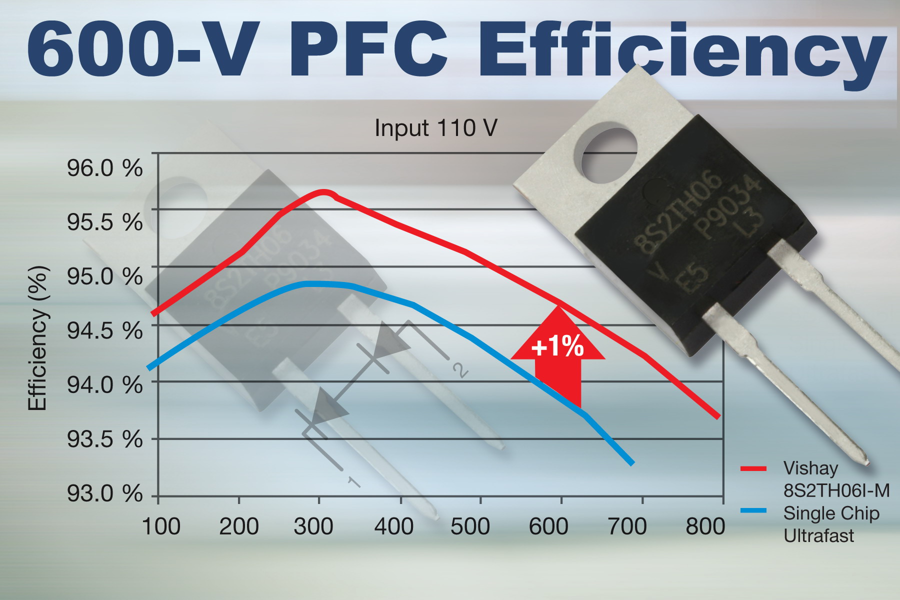 通過在導電和開關性能間的巧妙平衡,8S2TH06I-M將典型高頻PFC應用中的平均整體功率損耗減少了22%。