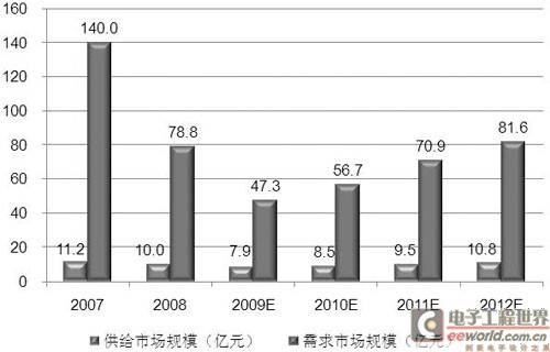 2007年-2012年中國半導(dǎo)體設(shè)備市場規(guī)模及預(yù)測