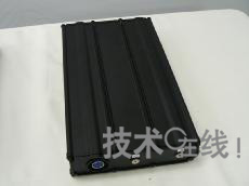 動(dòng)力用EVB-101是將84個(gè)單元按14串聯(lián)×6并聯(lián)配置而成的。其特點(diǎn)是最大輸出功率高,最高時(shí)為5.2kW,連續(xù)供電時(shí)為1.5kW。單元是采用電池容量為2050mAh的電動(dòng)助力自行車用高功率單元“UR 18650E”制成的。另外,通過比DCB-101增加串聯(lián)配置的比例,提高了輸出功率。模塊電壓為50.4V(42.0~57.4V),電池容量為10.8Ah,電容量為544Wh。雨堤徹介紹稱,比如,配備于電動(dòng)踏板摩托車時(shí)的持續(xù)行駛距離“因條件而異,不過配備一個(gè)單元時(shí),能夠行駛10~15km左右。配備2~3個(gè)單元時(shí),能夠行駛30~50km”。模塊的外形尺寸為366mm×213mm×66mm,重約7kg。