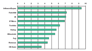 圖2全球功率半導(dǎo)體器件市場(chǎng)分布