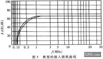 插入損耗用分貝(dB)表示,分貝值愈大,說(shuō)明抑制噪聲干擾的能力愈強(qiáng)。鑒于理論計(jì)算比較煩瑣且誤差較大,通常是由生產(chǎn)廠家進(jìn)行實(shí)際測(cè)量,根據(jù)噪聲頻譜逐點(diǎn)測(cè)出所對(duì)應(yīng)的插入損耗,然后繪出典型的插入損耗曲線(xiàn),提供給用戶(hù)。